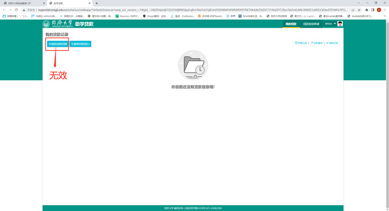 温馨提示:为谨防电信诈骗,中国银行及公司不会通过任何第三方机构、个人直接联系员工!已通过绿色通道或其他渠道完成学费缓缴,计划办理中国银行校园地国家助学贷款的同学耐心等候辅导员通知。all.tongji.edu.cn系统上的申请校园地贷款为无效按钮,请同学们不要点击申请。