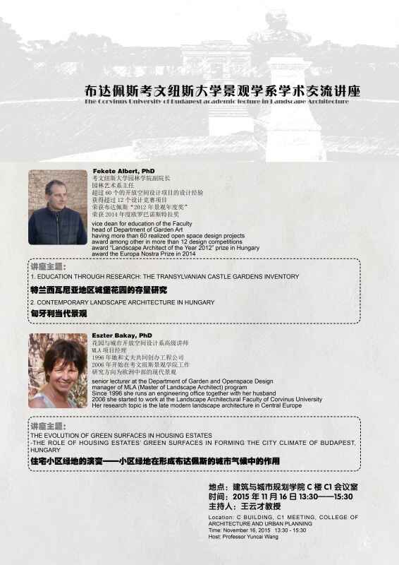 【11月16日 学术讲座】布达佩斯考文纽斯大学景观学系学术交流讲座