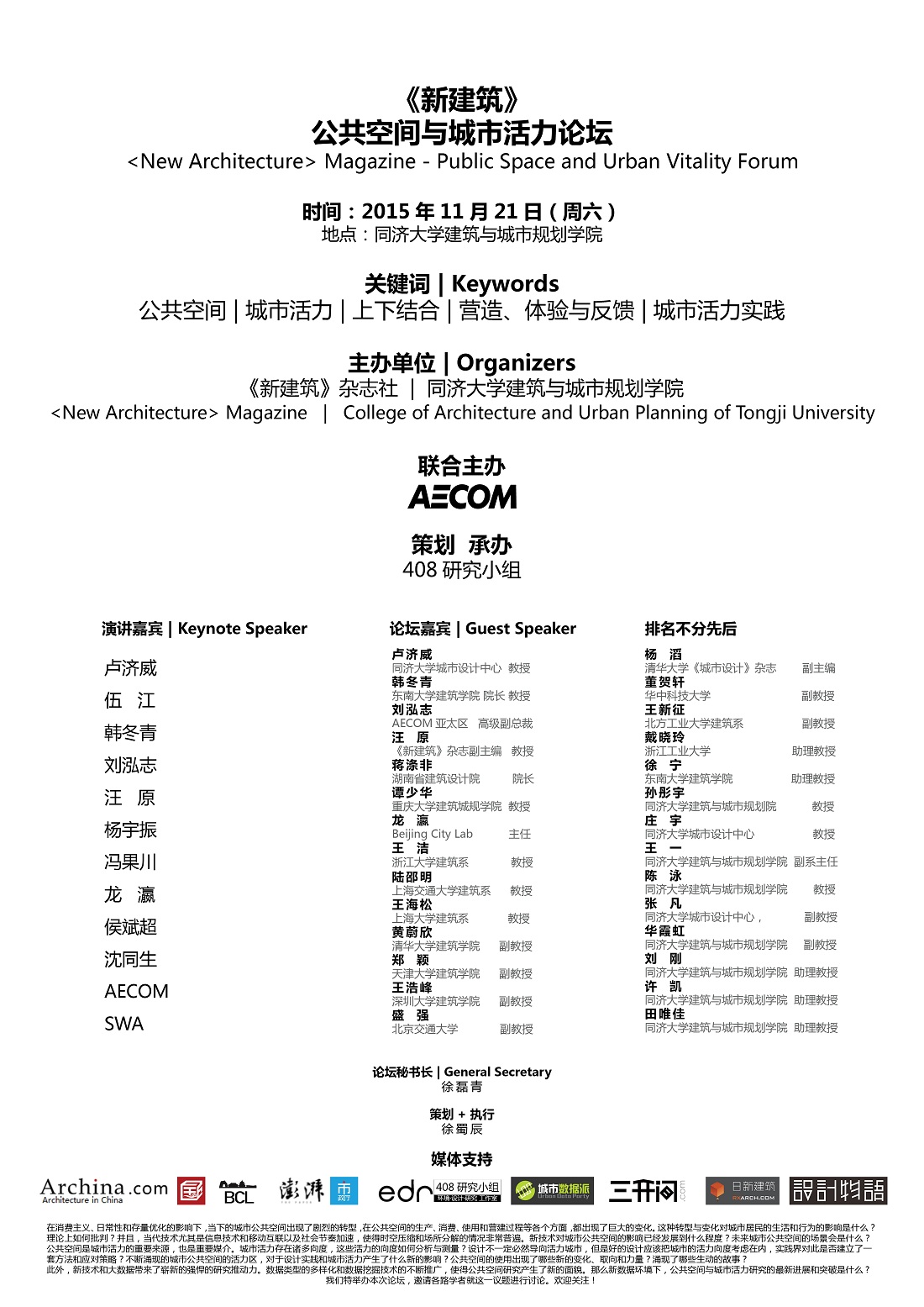 【11月21日 学术论坛】公共空间与城市活力论坛