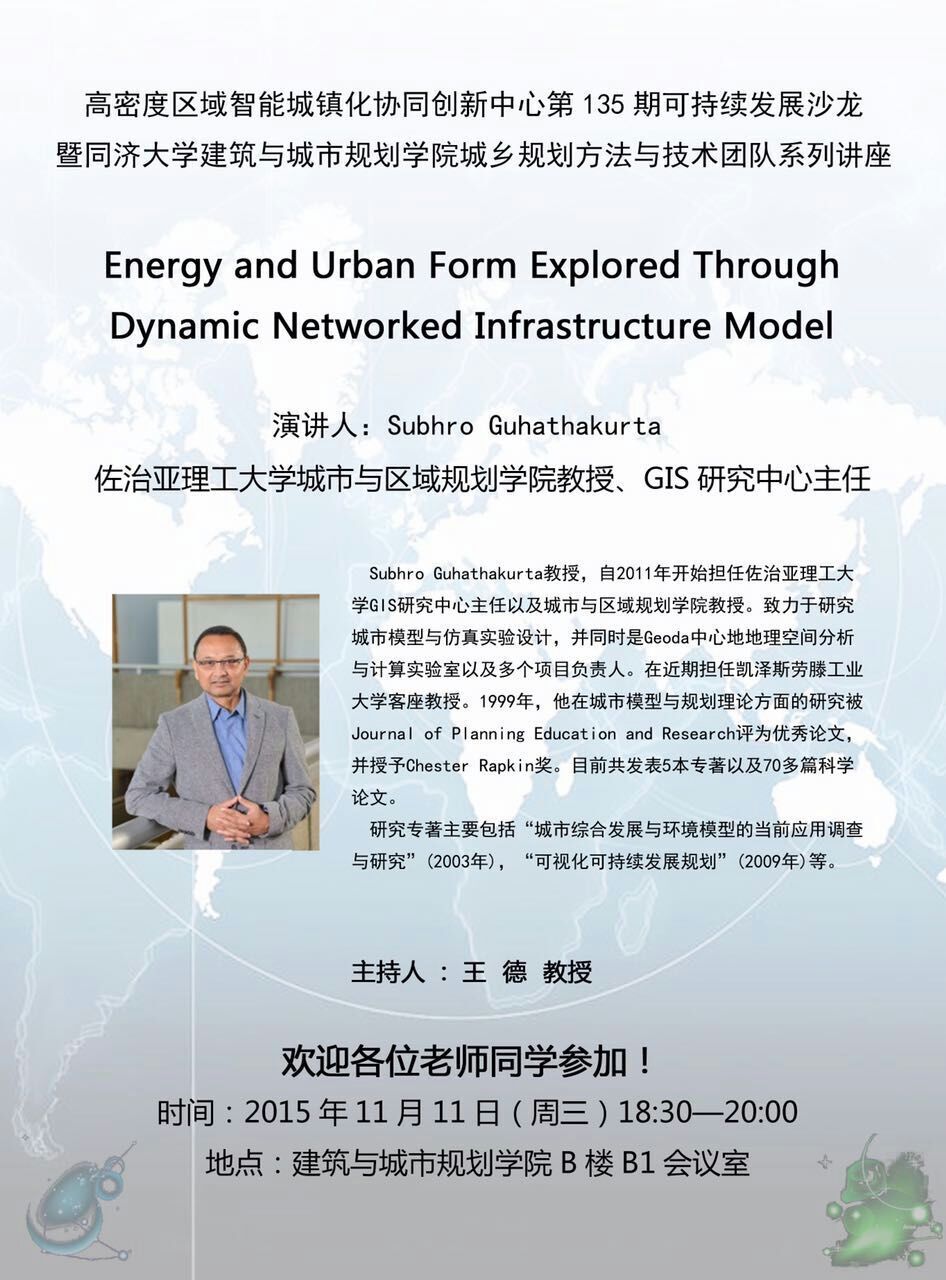 【11月11日 学术讲座】Energy and Urban Form Explored Through Dynamic Networked Infrastructure Model