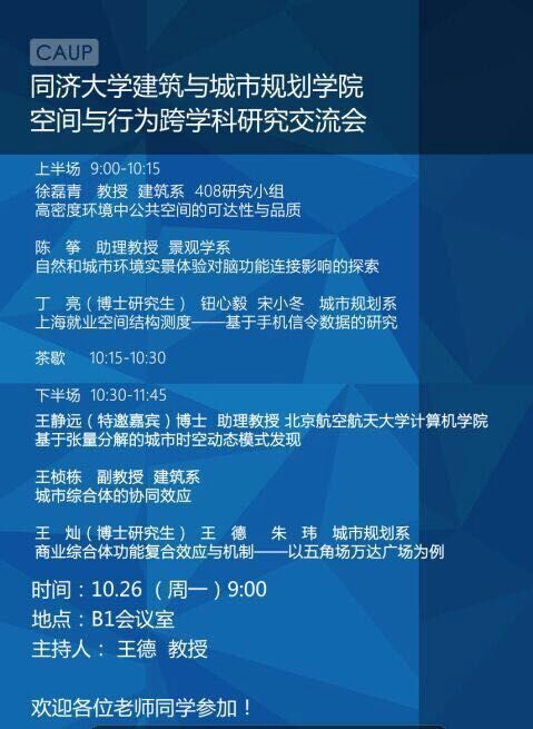 【10月26日 学术交流会】空间与行为跨学科研究交流会