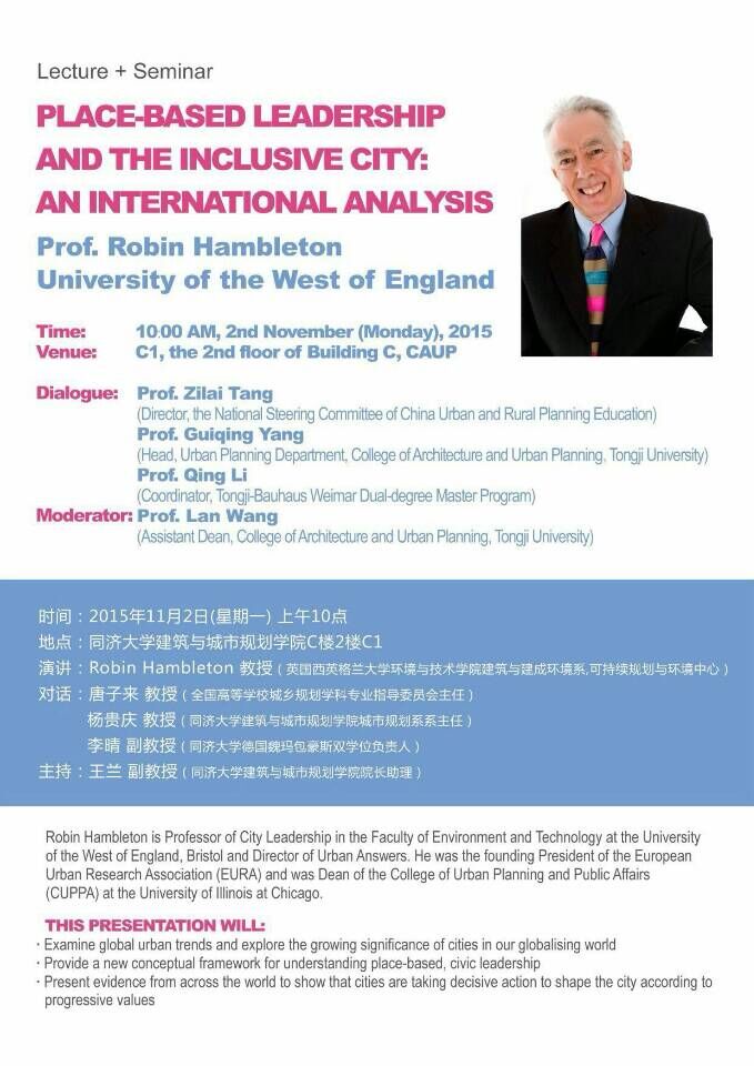 【11月2日 学术讲座】PLACE-BASED LEADERSHIP AND THE INCLUSIVE CITY: AN INTERNATIONAL ANALYSIS