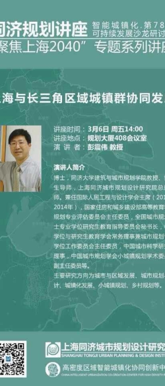 【3月6日 学术讲座】上海与长三角区域城镇群协同发展
