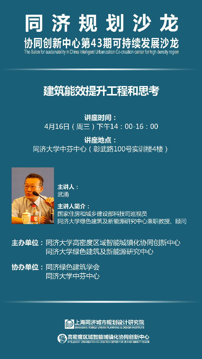 【4月16日学术讲座】主讲人武涌:建筑能效提升工程和思考