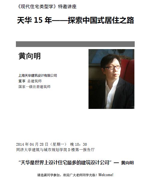【4月28日特邀讲座】黄向明:天华15年——探索中国式居住之路