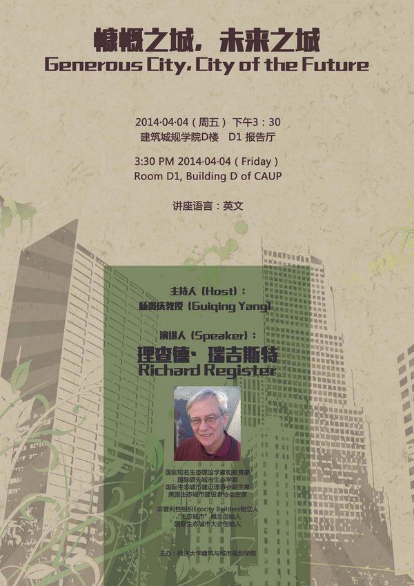 【4月4日学术讲座】Generous City, City of the Future(慷慨之城,未来之城) by Richard Register
