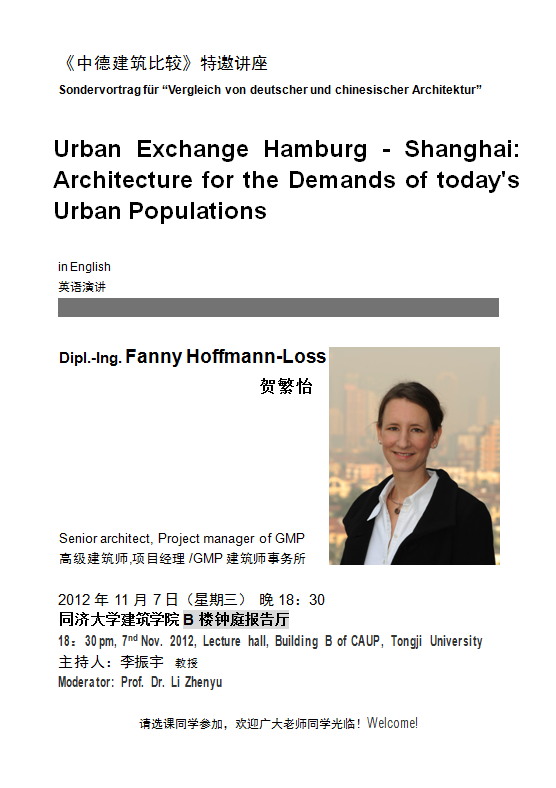 【讲座信息11月7日】Urban Exchange Hamburg - Shanghai: Architecture for the Demands of today's Urban Populations by Fanny Hoffmann-Loss