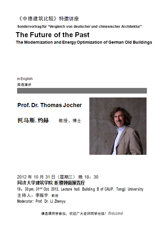 【讲座信息10月31日】The Future of the Past The Modernization and Energy Optimization of German Old Buildings by Prof. Dr. Thomas Jocher