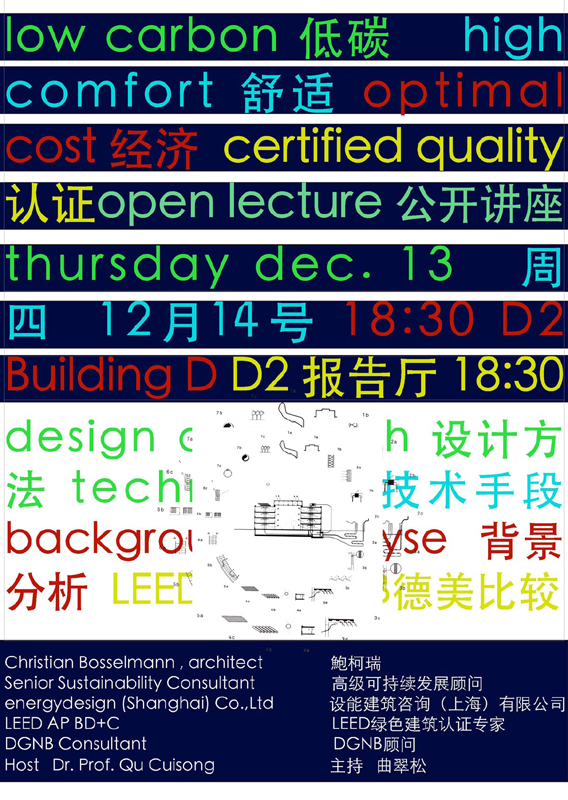 【讲座信息12月14日】低碳、舒适、经济、认证——绿色建筑技术公开讲座