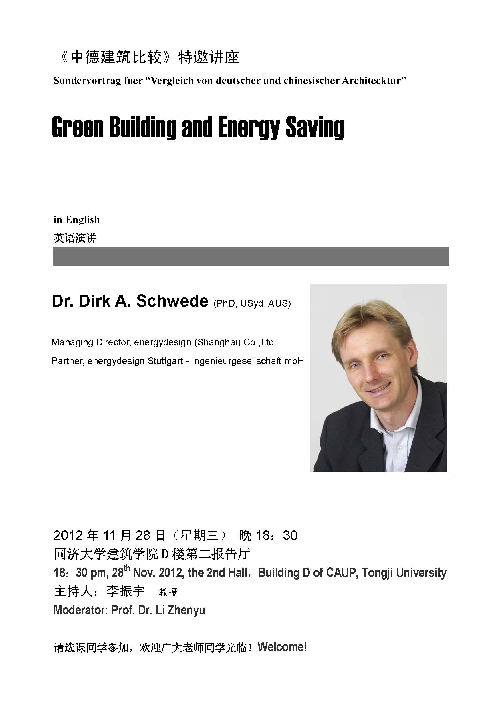 【讲座信息11月26日】Green Building and Energy Saving