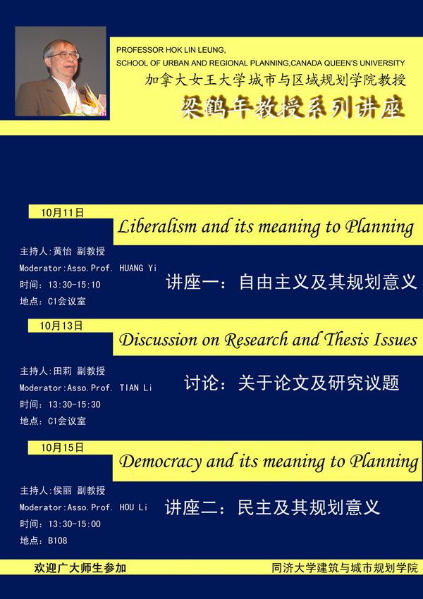 【10月11日-15日】加拿大女王大学梁鹤年教授系列讲座及论文辅导
