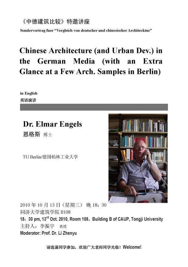 【10月13日 研究生《中德建筑比较》特邀讲座】- “Chinese Architecture (and Urban Dev.) in the German Media (with an Extra Glance at a Few Arch. Samples in Berlin)”(附演讲稿)