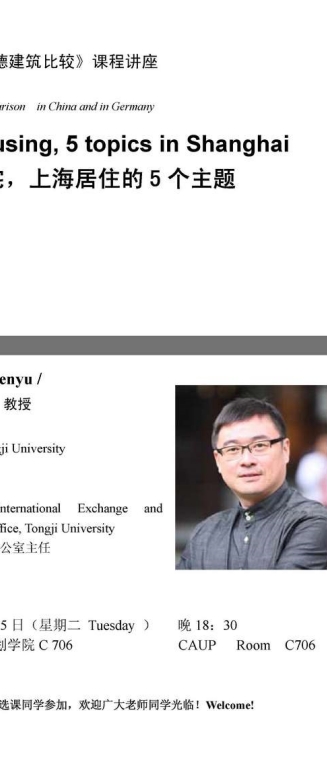 研究生《中德建筑比较》系列讲座 12月15日 - “City Housing,5 Topics in Shanghai”