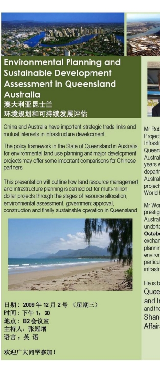 【讲座信息】12月2日 Environmental Planning and Sustainable Development Assessment in Queensland Australia
