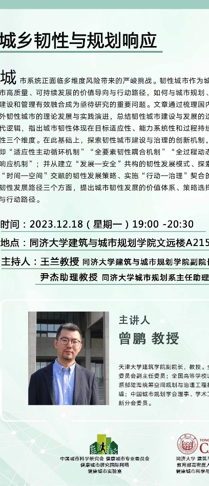 【12.18 讲座】城乡韧性与规划响应