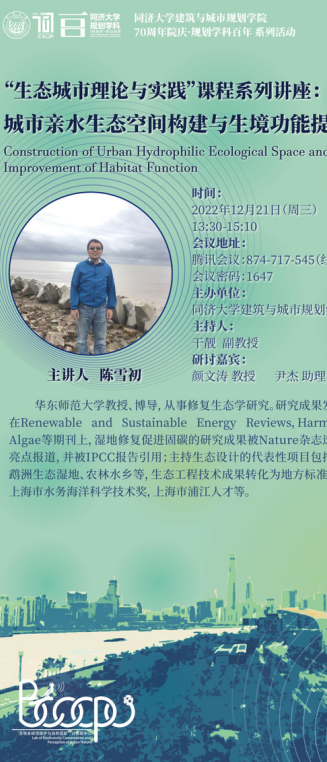 【12月21日 学术讲座】| 城市亲水生态空间构建与生境功能提升