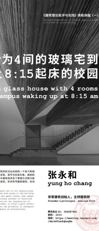 【9月21日 学术讲座】| 张永和:从分为4间的玻璃宅到早上8:15起床的校园