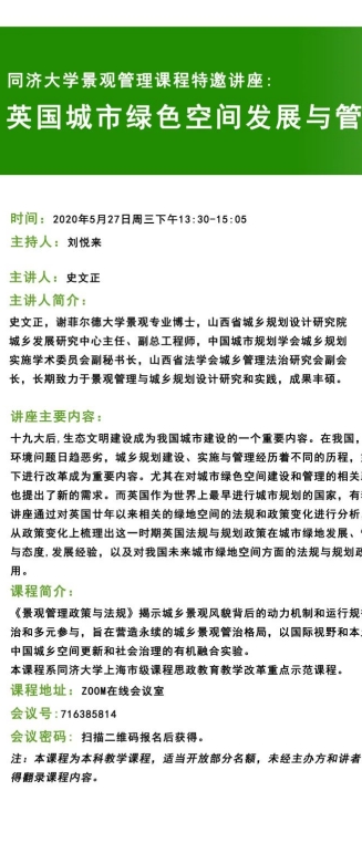 【5月27日 学术讲座】英国城市绿色空间发展与管理政策