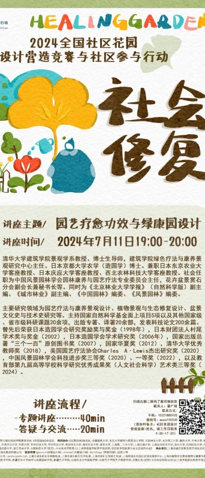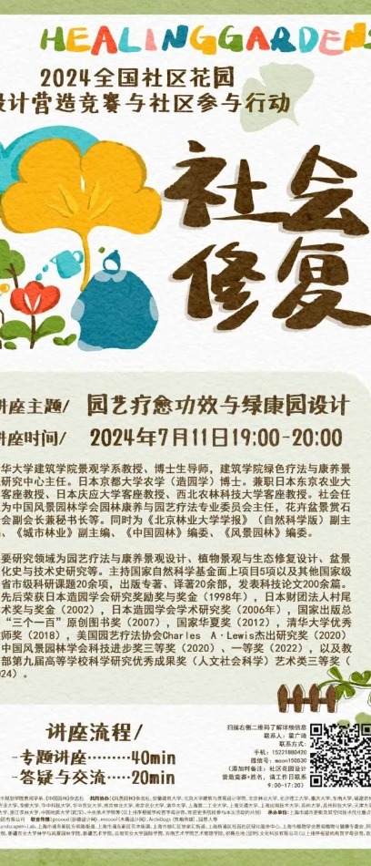讲座预告 | 李树华:园艺疗愈功效与绿康园设计 | 第四届全国社区花园设计营造竞赛与社区参与行动
