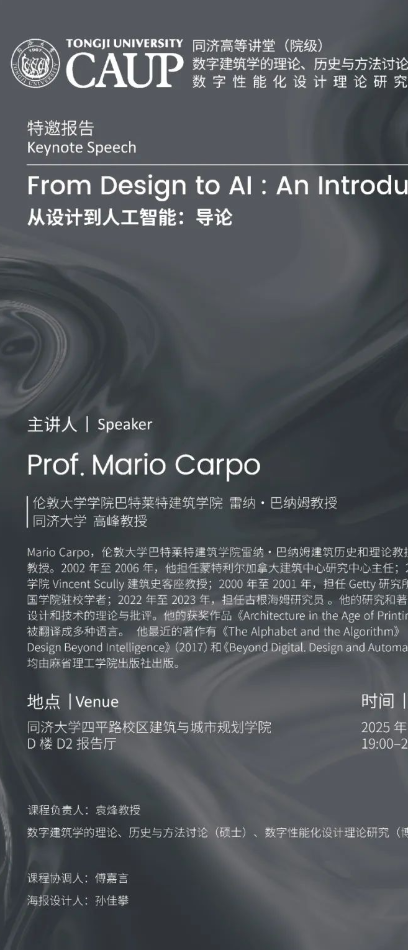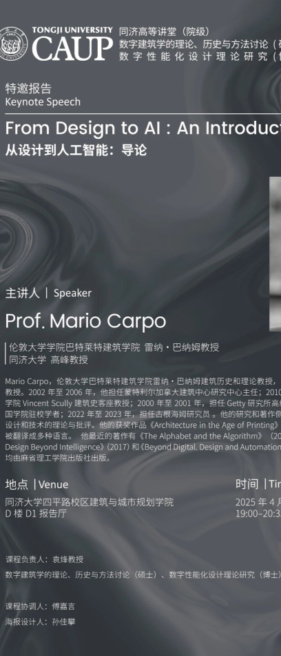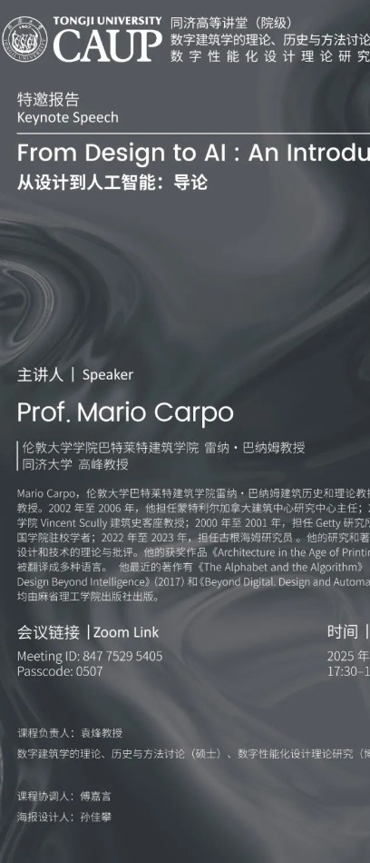【4.29 院级高等讲堂】Mario Carpo: 从设计到人工智能:导论