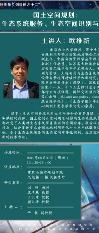 【5月9日 学术讲座】国土空间规划:生态系统服务、生态空间识别与分区