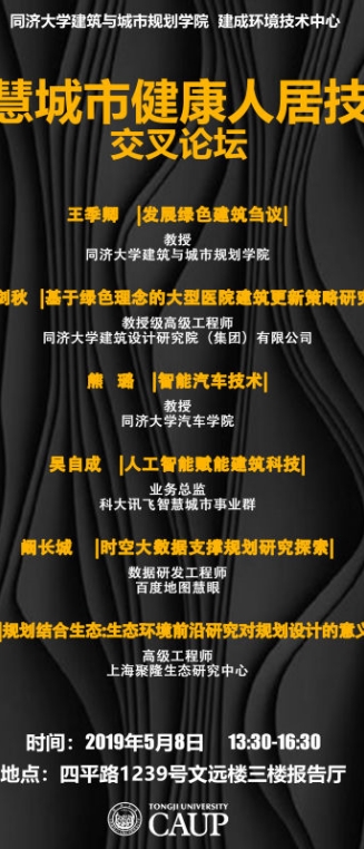 【5月8日 学术讲座】智慧城市 健康人居技术交叉论坛