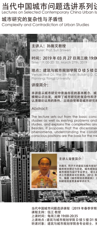 【3月27日 学术讲座】城市研究的复杂性与矛盾性