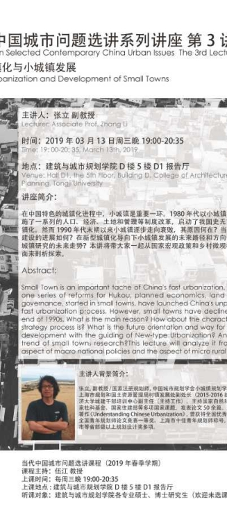 【3月13日 学术讲座】中国城镇化与小城镇发展