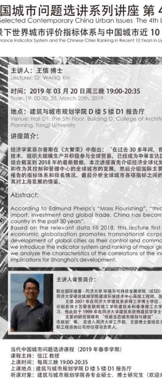 【3月20日 学术讲座】全球化背景下世界城市评价指标体系与中城市近10年排名