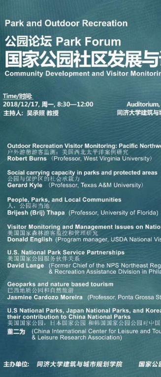 【12月17日 学术讲座】国家公园社区发展与访客监测