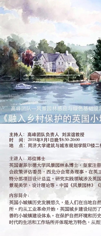 【8月1日 学术讲座】融入乡村保护的英国小城镇规划与设计