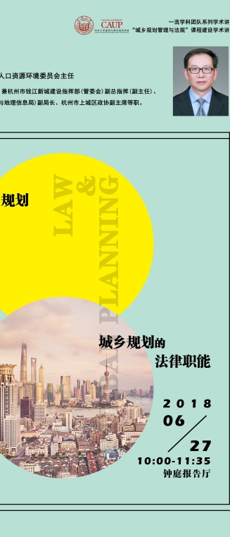 【6月20日&27日 学术讲座】“城乡规划管理与法规”课程建设学术讲座