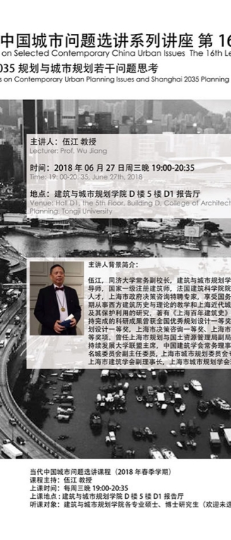 【6月27日 学术讲座】当代中国城市问题选将系列讲座 第16讲—上海2035规划与城市规划若干问题思考