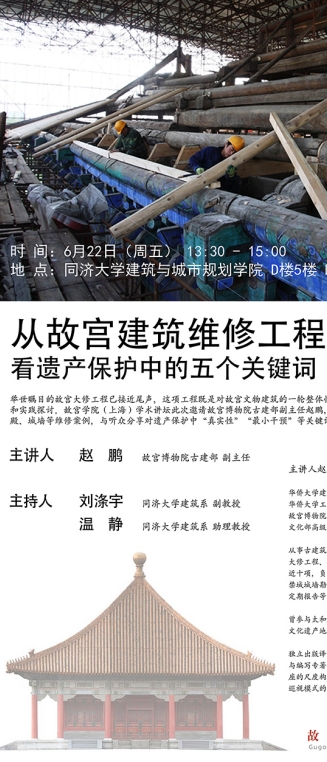 【6月22日 学术讲座】从故宫建筑维修工程实践看遗产保护中的五个关键词