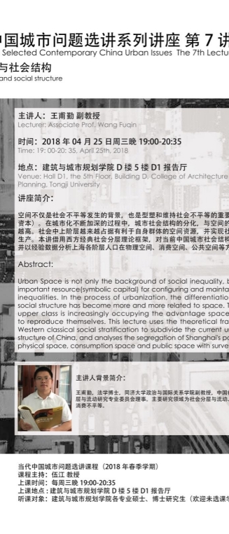 【4月25日 学术讲座】当代中国城市问题选讲系列讲座 第7讲