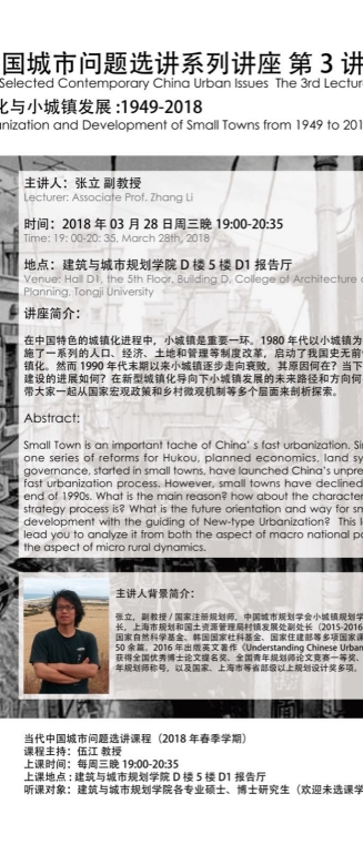 【3月28日 学术讲座】当代中国城市问题选讲系列讲座 第3讲