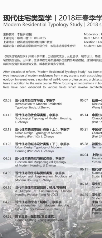 【2018年春季学期 课程安排】现代住宅类型学