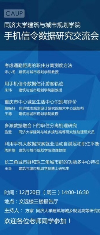 【12月20日 学术交流会】手机信令数据研究交流会