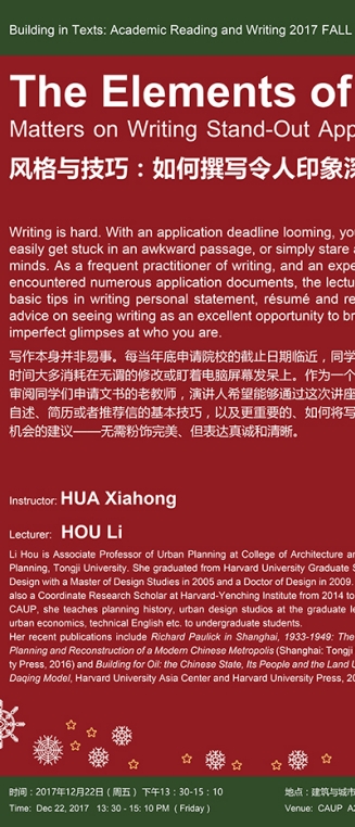 【12月22日 课程讲座】风格与技巧:如何撰写令人印象深刻的申请文书