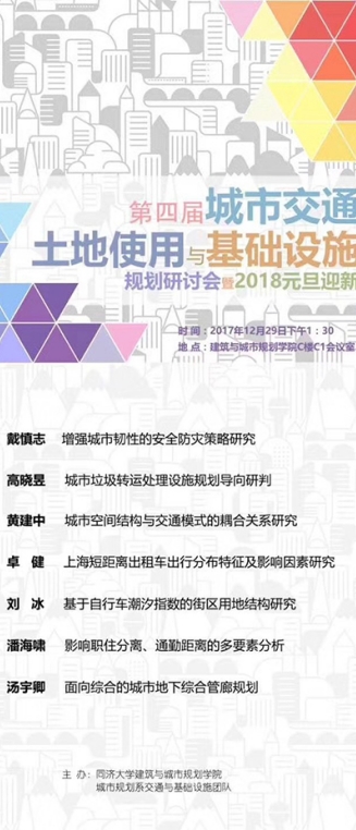 【12月29日 学术研讨会】第四届城市交通土地使用与基础设施规划研讨会暨2018元旦迎新