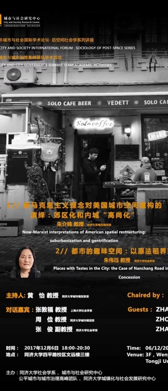【12月6日 学术讲座】“新马克思主义理念对美国城市空间重构的演绎:郊区化和内城“高尚化” / 都市的趣味空间:以原法租界南昌路为例