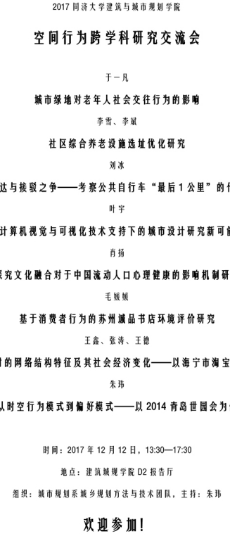 【12月12日 交流会】空间行为跨学科研究交流会