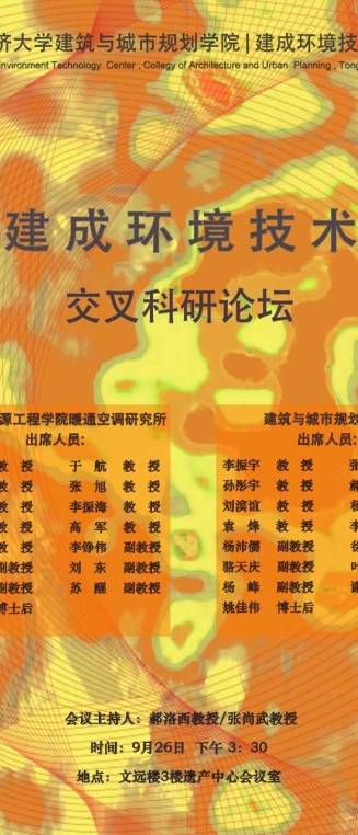 【9月26日 学术论坛】建成环境技术交叉科研论坛