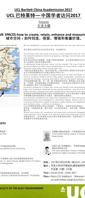 【10月30日 学术交流】城市空间:如何创造,保留,增强和衡量价值
