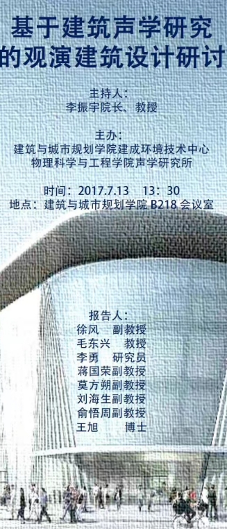 【7月13日 学术讲座】基于建筑声学研究的观演建筑设计研讨