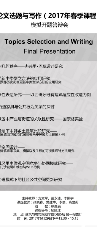 【6月29日 学术讲座】论文选题与写作(2017年春季课程)模拟开题答辩会