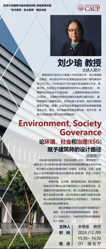 【12.09 院级高等讲堂】论环境、社会和治理(ESG)赋予建筑师的设计路径