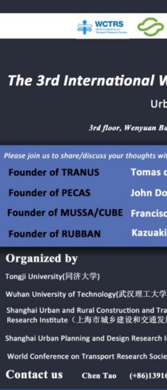 【6月3-4日 学术论坛】The 3rd International Workshop on Integrated Land Use Transport Modeling