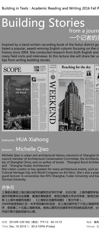 【12月16日 学术讲座】一个记者的英文建筑写作实践
