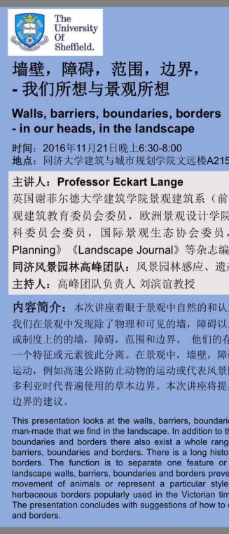 【11月21日 学术讲座】墙壁,障碍,范围,边界——我们所想与景观所想